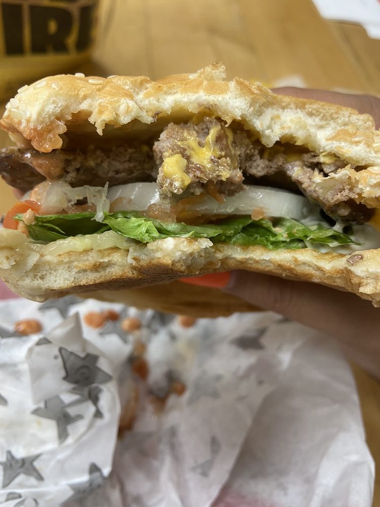 Three Charbroiled all-beef patties, our Classic Sauce, melted American cheese, and lettuce all on a seeded bun. Served with fries and a soft drink.